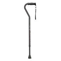 The Airgo straight cane with offset handle is made from ultra-durable lightweight anodized aluminum and offers stability for people who need a little support. The Comfort-Plus handle has a cushioned grip helps absorb shocks. The cane is height adjustable with 12 push buttons to ensure custom fitting. The treaded rubber Flex-Grip tip provides superior traction. Includes a cane strap with reflective patch for added night time safety.