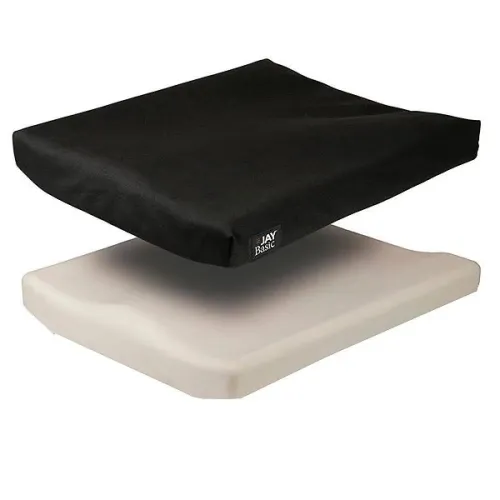 The JAY® Basic wheelchair cushion is a soft, mildly contoured durable foam base designed for the client at very low risk of skin breakdown who requires mild stability. The Basic's soft foam base is mildly contoured to provide support and increase sitting tolerance when using wheelchairs with sling upholstery. Its beveled bottom reduces the "hammocking" effect of upholstery, keeping the wheelchair seating surface level for improved pelvic alignment over time. A moisture-resistant cover assists with incontinence management by protecting the Basic's foam base from moisture build-up. Its no-slip surface keeps the cushion in place during use and transfers.