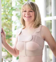 ABC’s Velcro Compression Bra is designed to stabilize breast tissue, helping to reduce swelling that may occur after breast-surgery; great for use after mastectomy, breast reduction, breast augmentation, or reconstruction. Our design features a velcro-front closure, adjustable straps, and soft inner pockets that accommodate breast forms. Style 119.