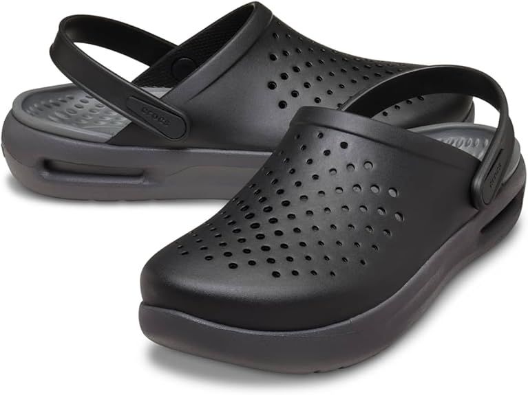 Crocs InMotion Clog is athletically inspired to suit your on-the-go lifestyle. The LiteRide™ foam footbed provides the ultimate level of support and cushioning while the soft, flexible Free Feel Technology™ floats on the top of the foot allowing movement without restriction. The fully molded Croslite outsole makes this style lightweight and durable. The pivoting backstrap provides a secure fit.