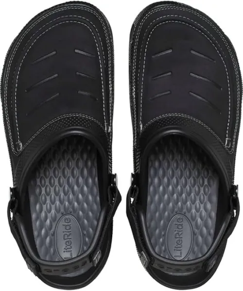 Crocs Yukon Vista II LR Clogs add a dose of ruggedness with the leather uppers. Made of Croslite™ soles and LiteRide™ footbeds, these crocs are lightweight and extremely comfortable. The pivoting heel strap is adjustable with a hook-and-loop closure system to allow for a custom fit.