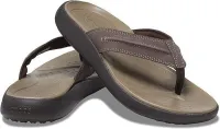 Crocs Men’s Yukon Vista II LiteRide™ Flip features faux leather uppers with stitched details. Textile toe-post allows a comfortable fit and feel. Croslite™ foam outsoles can handle the outdoor elements while LiteRide™ footbeds provide sink-in softness for everyday comfort.