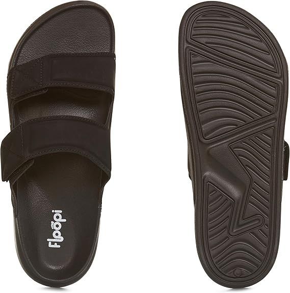 Floopi Men Sandals provide a sleek aesthetic with premium vegan leather uppers. The integrated heel and arch support provide comfort and stability throughout the day. The durable EVA outsole provides exceptional traction. Adjustable Velcro straps allow for a custom fit.